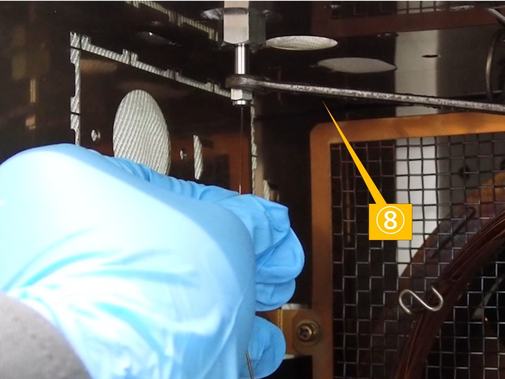 After passing the nut (without slit) through the column, use a 6×8 spanner (⑧) to fix the graphite ferrule just enough to prevent it from falling out.