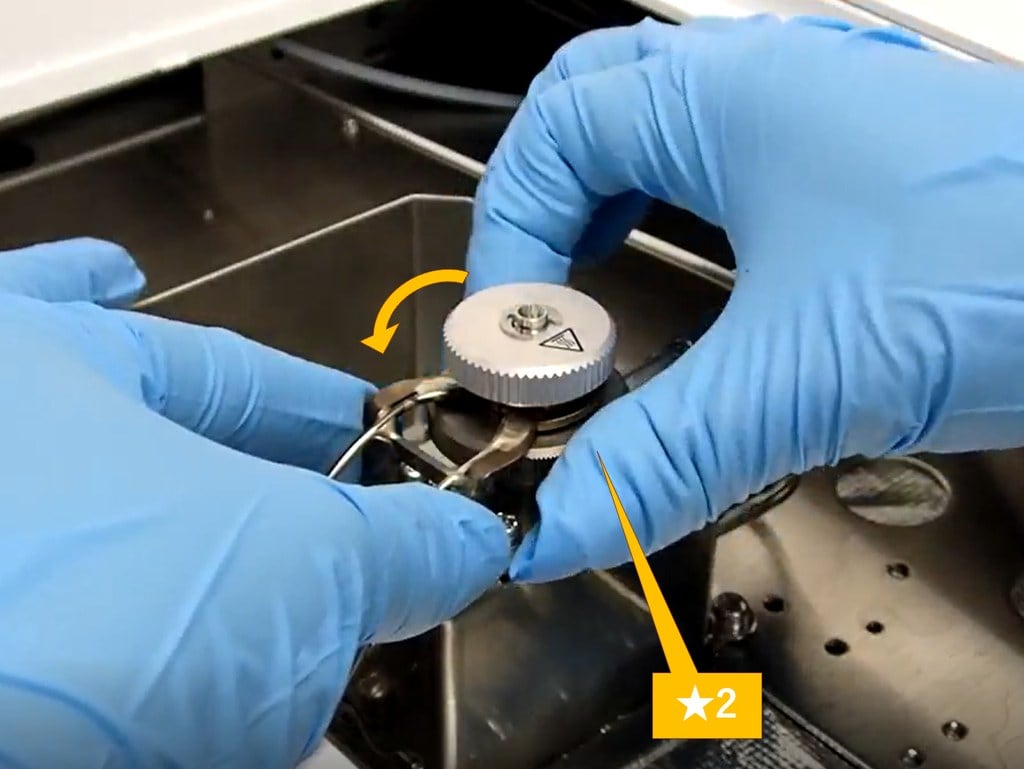 ガラスインサート固定ナット(★2)を手で反時計回りに回して取り外します。