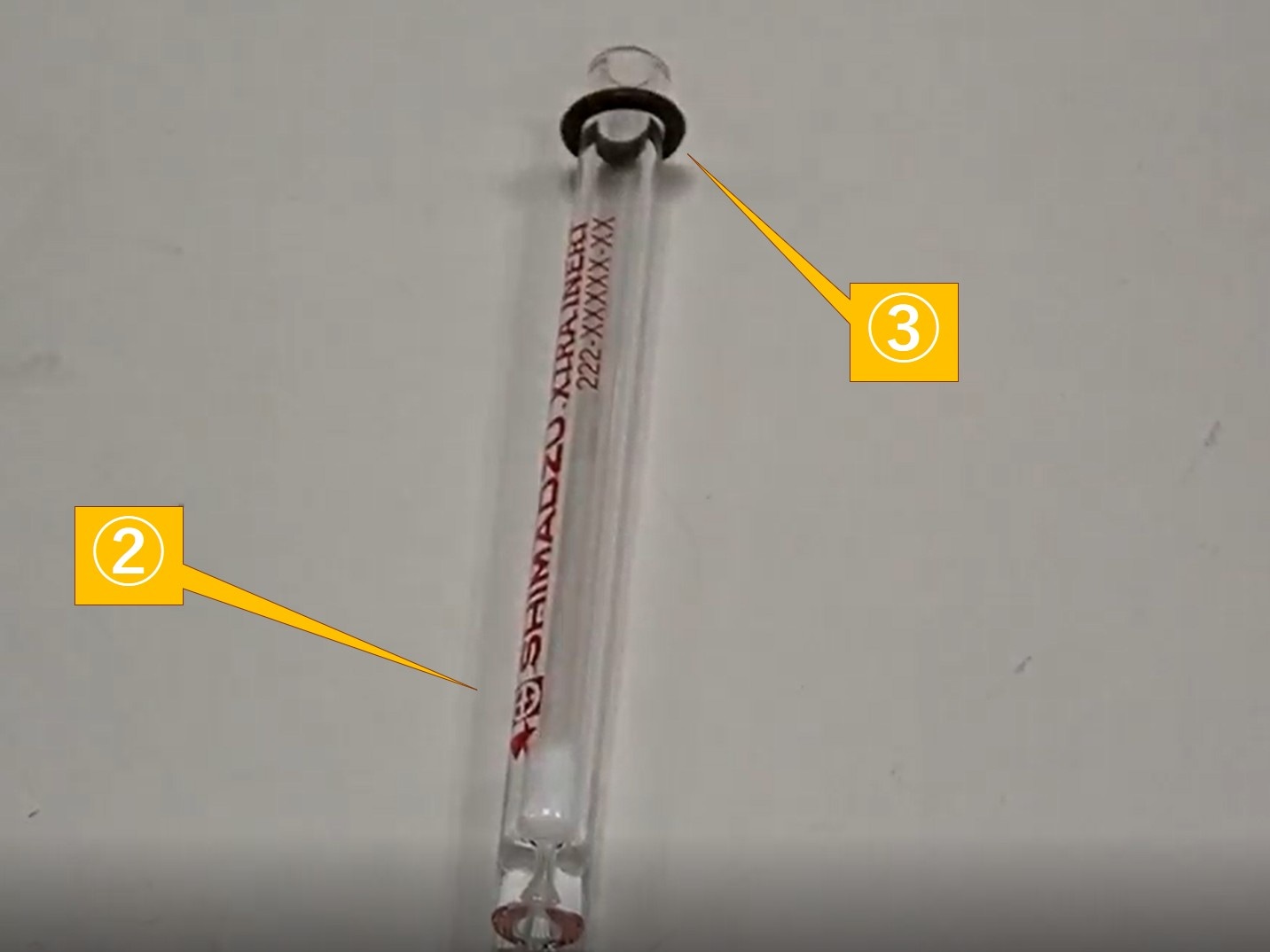 標準付属品のガラスインサートには、あらかじめ所定の位置にシリカウールが充てんされています。シリカウールが充てんされていないガラスインサートを使用するときは、 シリカウール充てん位置ガイド を参考にシリカウールを充てんしてください。